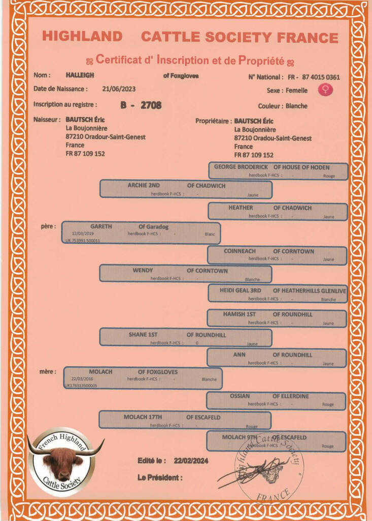 L’ancien certificat de la F-HCS n’est pas un certificat zootechnique mais il est utilisé seulement pour justifier d’un prix réduit pour l’inscription d’un animal déjà référencé. Par exemple: