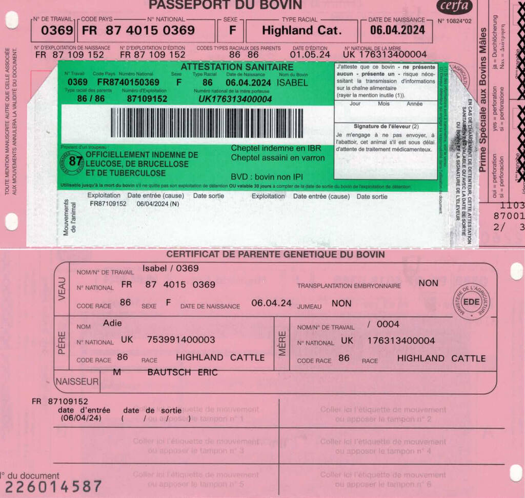 Si votre animal lui-même ne possède pas un certificat zootechnique étranger, il faut aussi fournir sa carte rose.