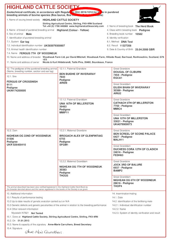 Tout d’abord un certificat zootechnique soit de l’animal lui même, soit de ses deux parents.